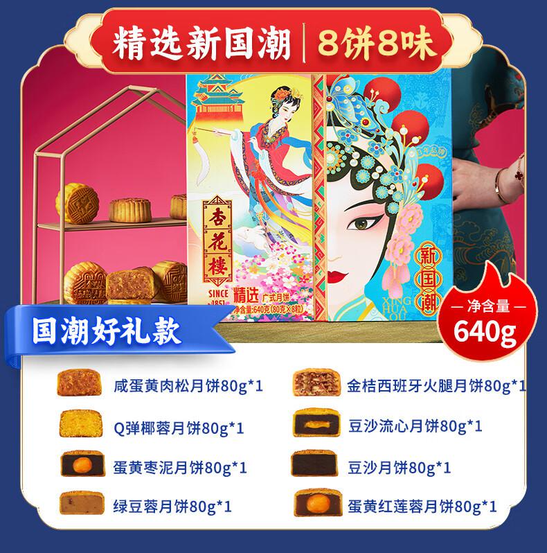 介紹:咸蛋黃肉松月餅80g*1 金桔西班牙火腿月餅80g*1 Q彈椰蓉月餅80g*1 豆沙流心月餅80g*1 蛋黃棗泥月餅80g*1 豆沙月餅80g*1 綠豆蓉月餅80g*1 蛋黃紅蓮蓉月餅80g*1