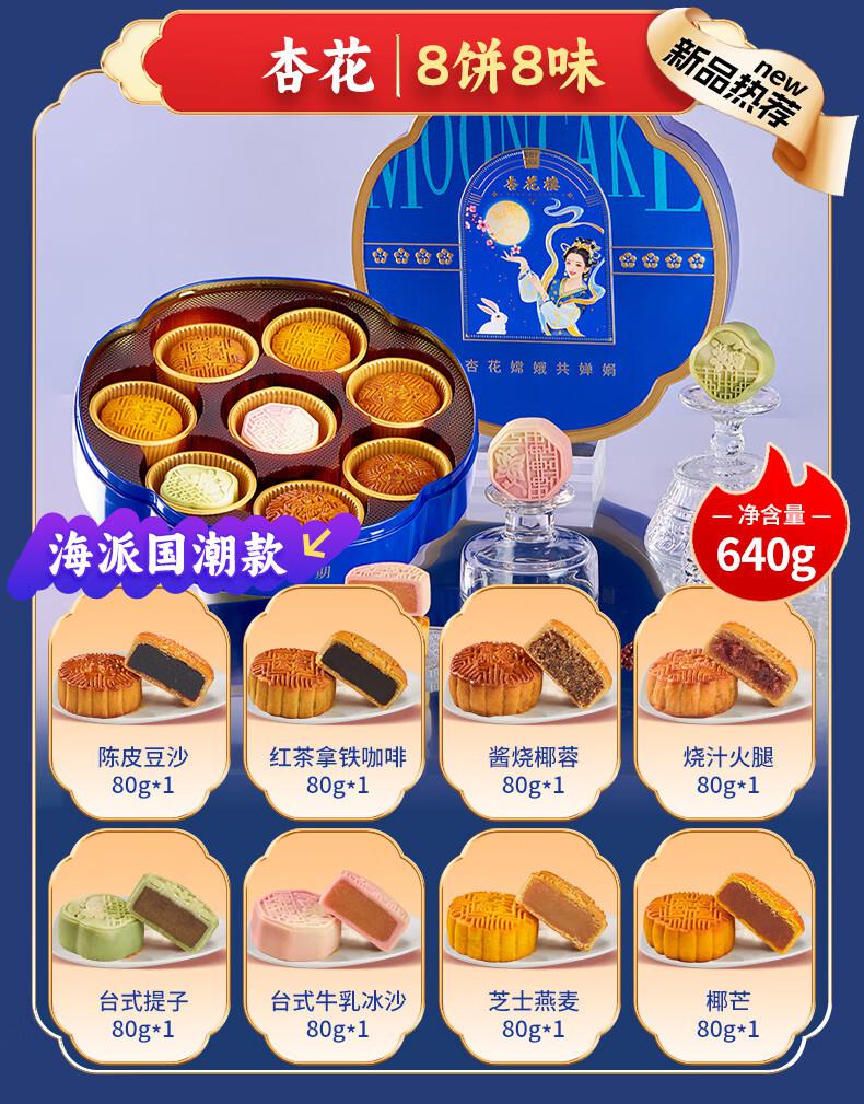 介紹:陳皮豆沙80g*1 紅茶拿鐵咖啡80g*1 醬燒椰蓉80g*1 燒汁火腿80g*1 臺式提子80g*1 臺式牛乳冰沙80g*1 芝士燕麥80g*1 椰芒80g*1