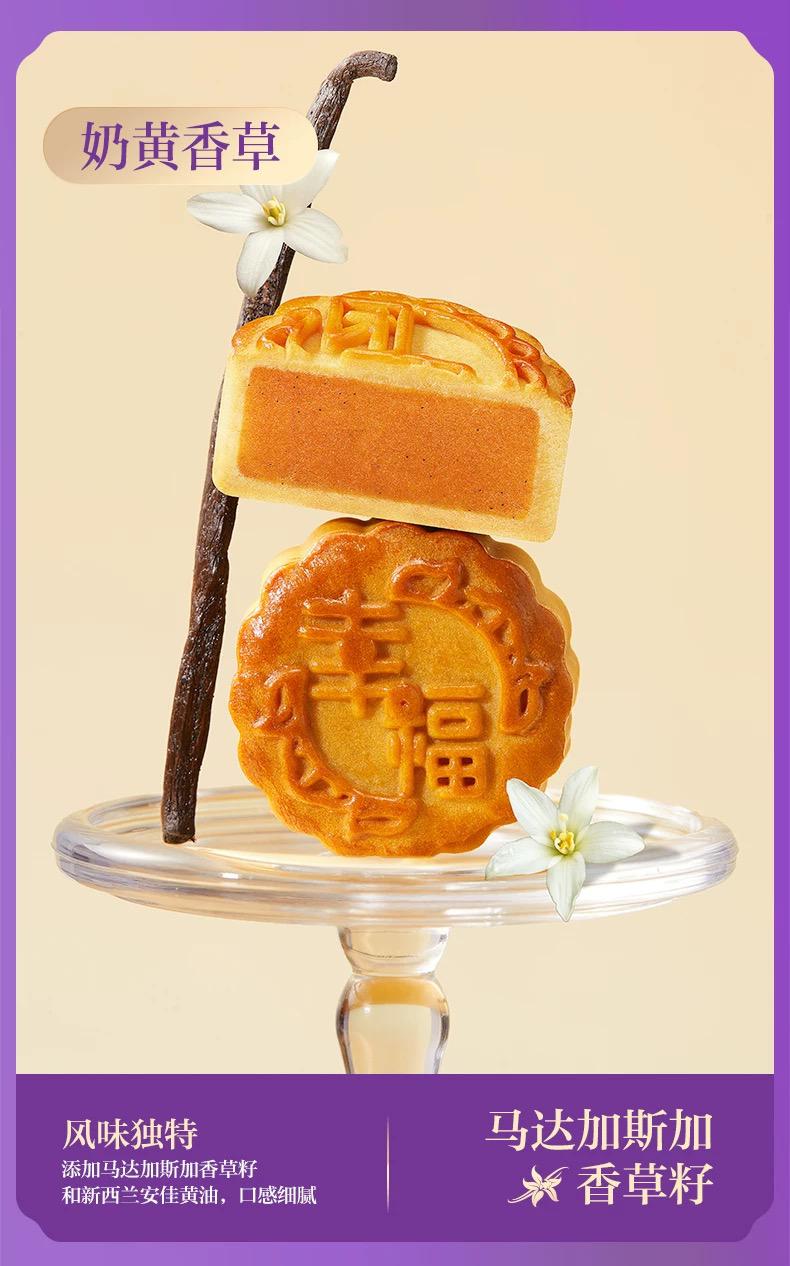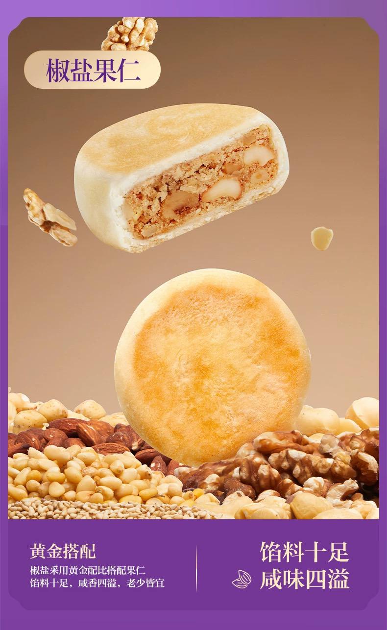 介紹:椒鹽果仁(蘇) *2 奶黃香草(廣)*6 經(jīng)典百果(蘇)*2 金腿五仁(廣)*2 帕瑪森干酪(高檔) *2