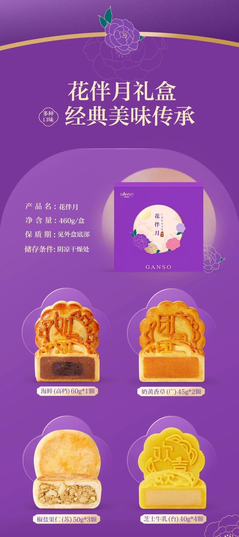 介紹:海鮮(高檔)*1 椒鹽果仁(蘇) *3 奶黃香草(廣)*2 芝士牛乳(臺)*4